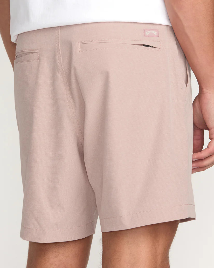 Our Billabong quick-dry, 4-way stretch hybrid shorts fit in everywhere. Featuring a relaxed, straight fit with a 17" length, the Crossfire 17 Submersible Hybrids sport structured chino styling complete with button closure and pockets. From paddling to grilling, these versatile shorts ensure comfort and style. Micro repel oxford stripe quad blend fabric. Featured here in the Dusty Pink colorway.
